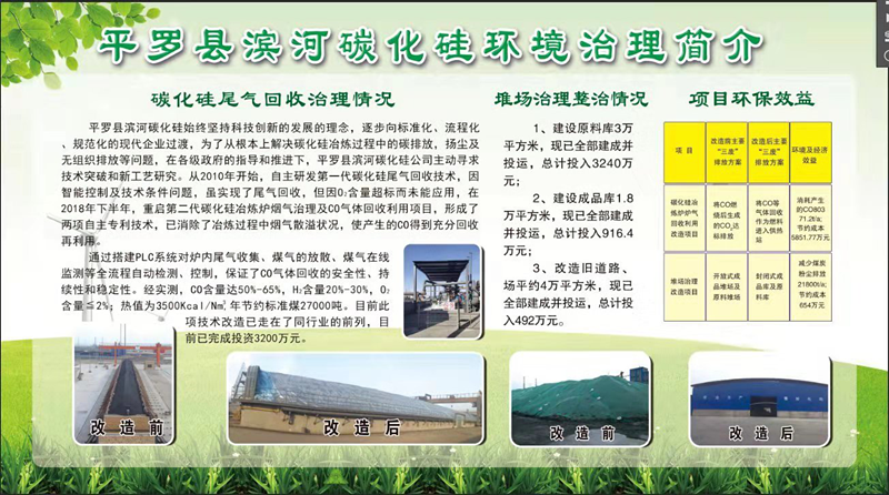 2019年3月11日,由自治區(qū)政協(xié)副主席李彥凱帶隊(duì),對(duì)平羅縣重點(diǎn)環(huán)保工程整改進(jìn)行了調(diào)研和督查。督察組來到了我公司寧夏濱河碳化硅制品有限公司,先在我公司展廳了解了我公司的發(fā)展歷程和觀看了環(huán)保整治前后的ppt,然后到現(xiàn)場對(duì)整治完的工程進(jìn)行了觀摩。